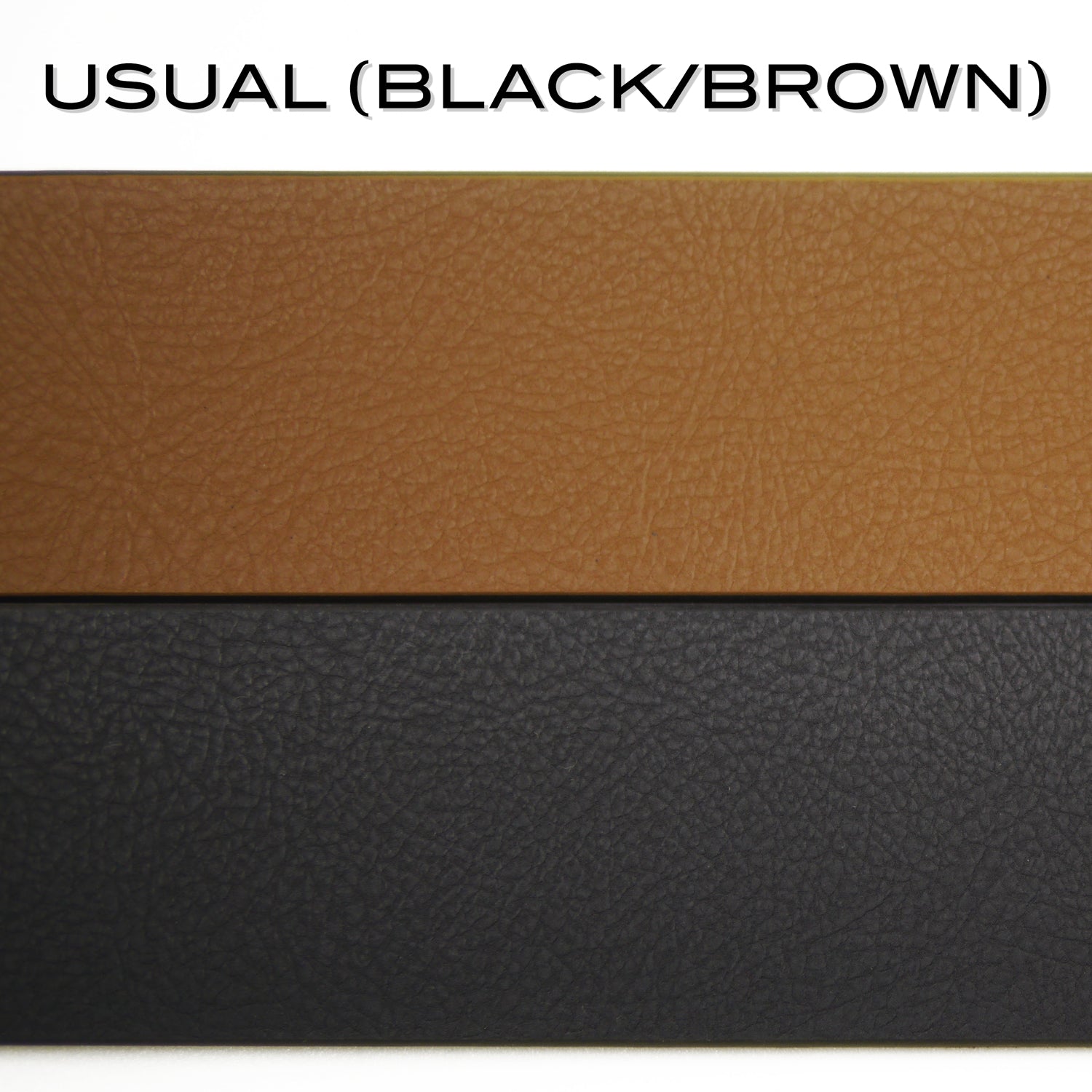 The NEW MIN STRAP has The Seamless 2 in 1 Color Reversible Strap Technology, allowing to swap between colors based on your outfit or preference. There are two choices of NEW MIN Strap: USUAL (Black/Brown) and CASUAL (Blue/Grey). There are four sizes to choose from for your waist size.